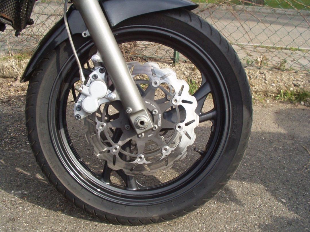 Impressioni: frenata potente e modulabile come mai provata prima (NB: con l'occasione ho anche sostituito i tubi originali con tubi in treccia braking e raccordi motorquality). Da fermo l'avantreno sembra più leggero, grazie al peso notevolmente ridotto dei dischi braking rispetto agli originali.