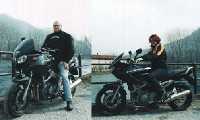 Adoriamo la nostra Gingerona (TDM 900), che segue la precedente Ginger - mitico 850 del 95, che abbiamo acquistato ancora prima che nascesse. Con Lei trascorriamo tutti nostri week-end ingiringiro, e da qualche tempo le abbiamo regalato una sorellina: una Kawa E-r5 che aiuta Bruna a non passare tutto il tempo appollaiata dietro (l'età avanza, Albi ormai ha raggiunto i 37 e Bruna i 33...).