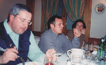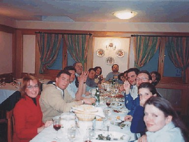 La cena all'Hotel Walser... il tasso alcoolico cresce... si intravedono Carlo Cattaneo e Giuliana (quella con cui lui parla), e in fondo un ToscoFiguro (sono tutte citazioni ben conosciute dai componenti la ML Mototuristi) (fotoMuscolino)